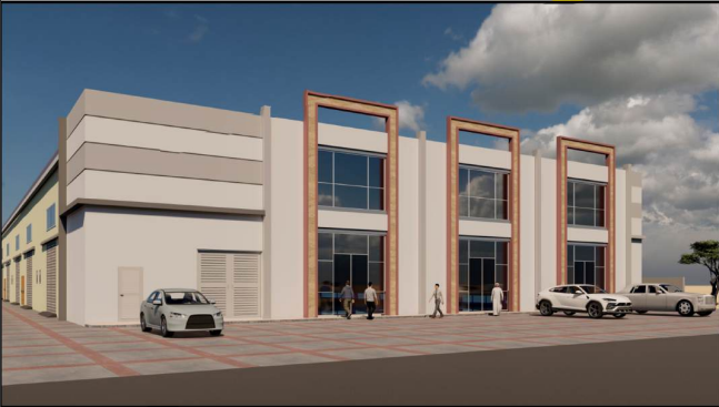 NAFACO Construction is managing the construction, which is actively underway. The development includes functional sheds and a showroom tailored for commercial use.